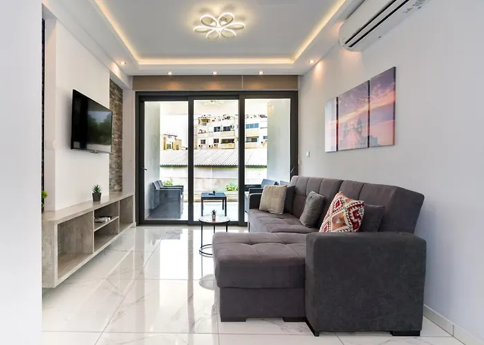 Bahçe manzarasına sahip Luxury Modern Larnaca Central, Mackenzie Plajı'a yaklaşık 2 km uzaklıkta yer almaktadır.